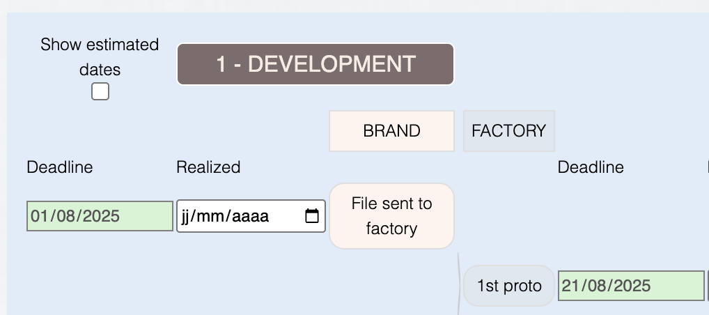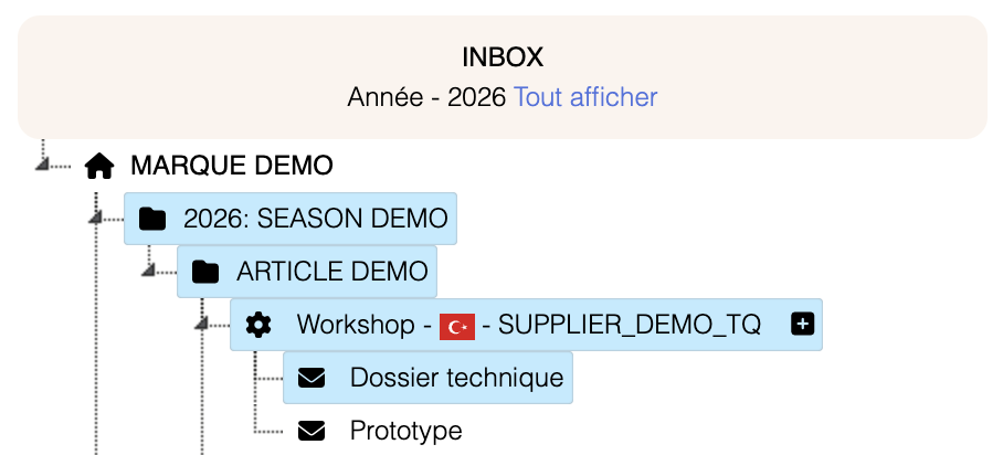 - Grâce à votre rétroplanning et la messagerie, vous pouvez retracer l’ensemble des flux physiques (tissus, proto, containers, etc.) et à quelle date.